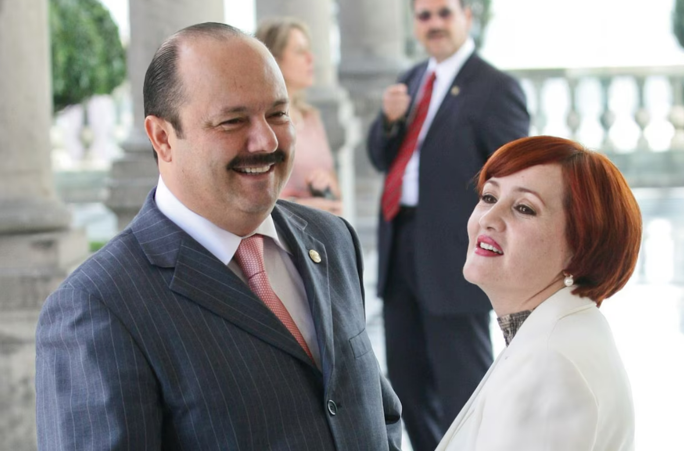 César Duarte y su esposa, Bertha Gómez, durante un evento público en el Alcázar de Chapultepec, en 2008. (Isaac Esquivel Monroy)
