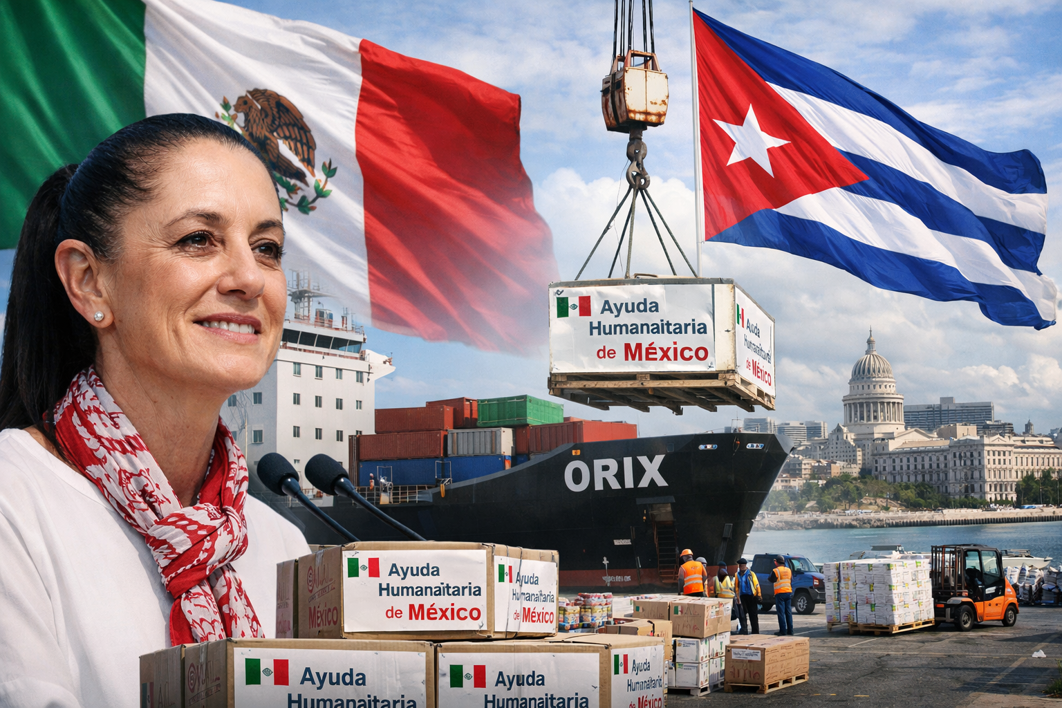 La presidente Sheinbaum confirmó que el gobierno de México envió ayuda humanitaria a Cuba como parte de su política exterior y de «cooperación internacional». El envío, realizado el lunes, fue autorizado directamente desde el Ejecutivo federal y se llevó a cabo a través de los canales oficiales del Estado mexicano, en coordinación con las autoridades cubanas.